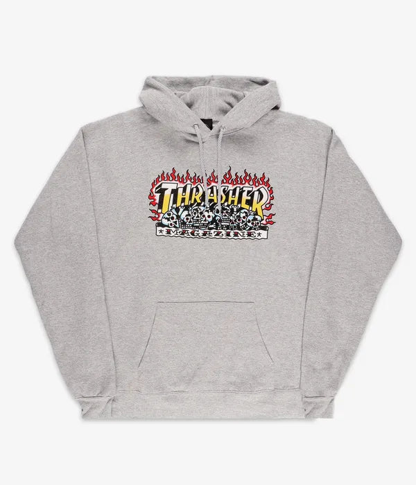 THRASHER - KRAK SKULLS HOOD - HEATHER GREY